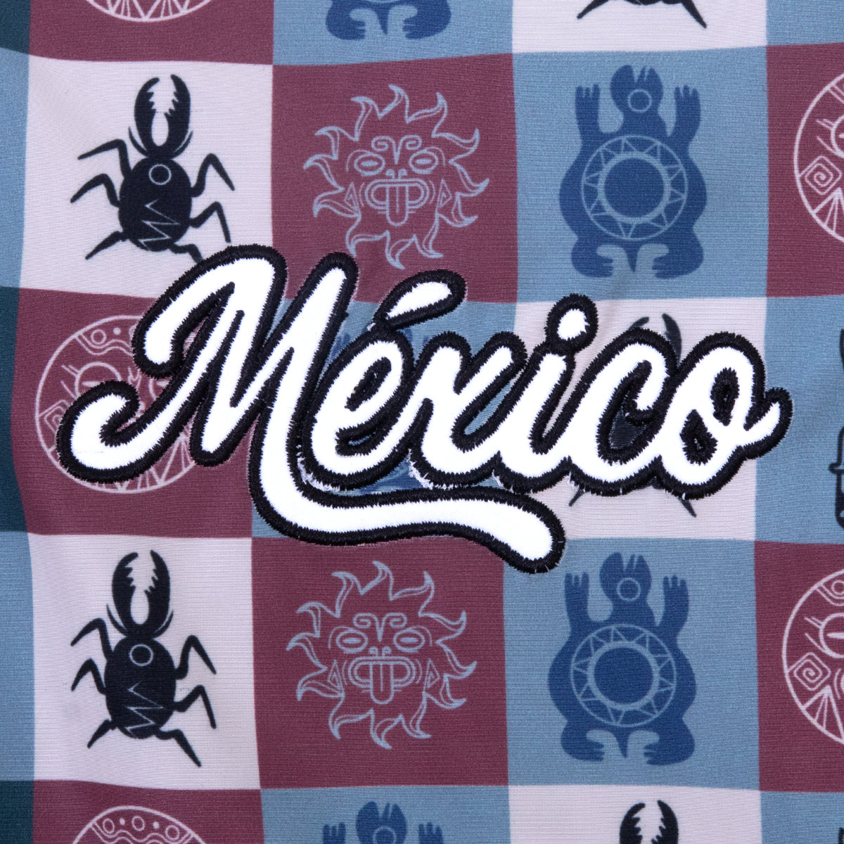 Esta chamarra bomber unisex está confeccionada en poliéster fino sublimado, un material ligero, cómodo y versátil que brinda una excelente presencia visual y gran comodidad para el uso diario. Su diseño incorpora tejido en cuello, pretina y puños, lo que aporta un ajuste cómodo y una silueta clásica tipo bomber, mientras las bolsas de vivo refuerzan su acabado limpio y funcional. El concepto visual de íconos prehispánicos se complementa con aplicaciones bordadas de México, creando una prenda llena de identidad, historia y fuerza estética.