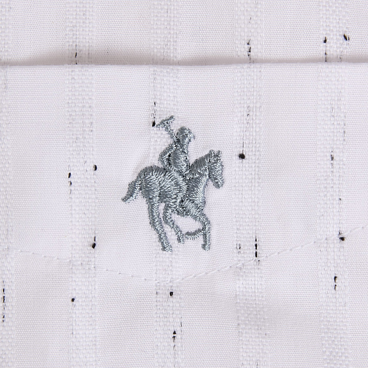 La textura jaspeada ofrece un efecto visual interesante y ligero. El caballo bordado y la bolsa en pecho suman funcionalidad y detalle premium.
