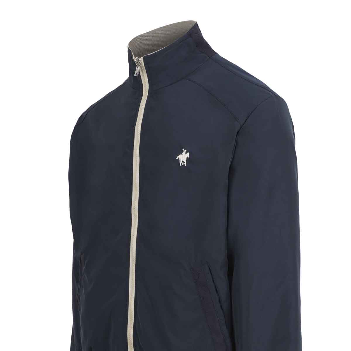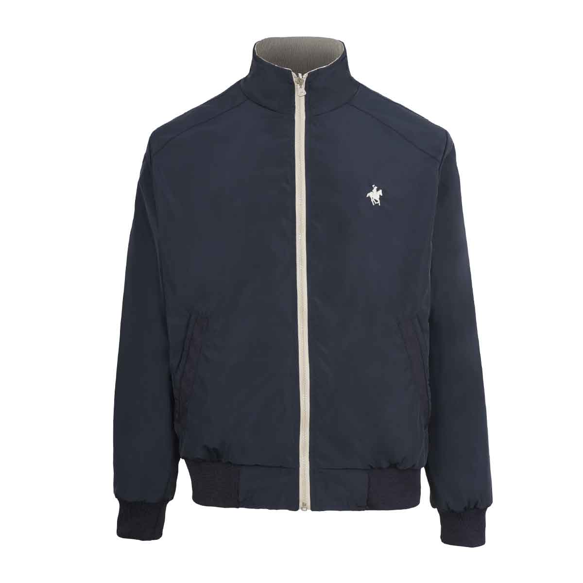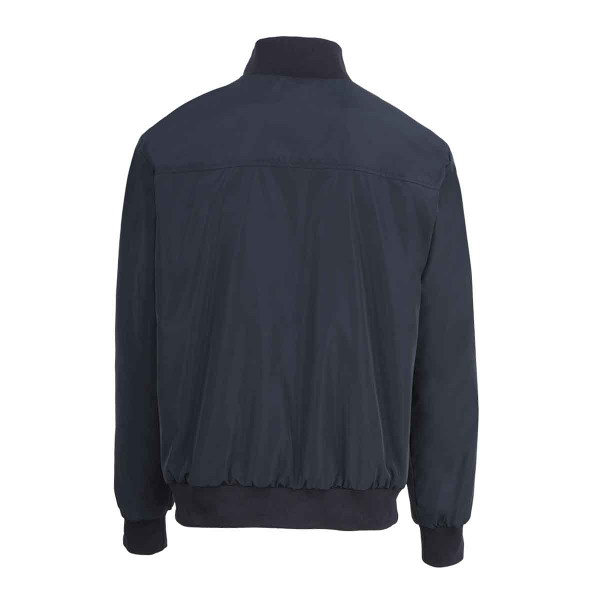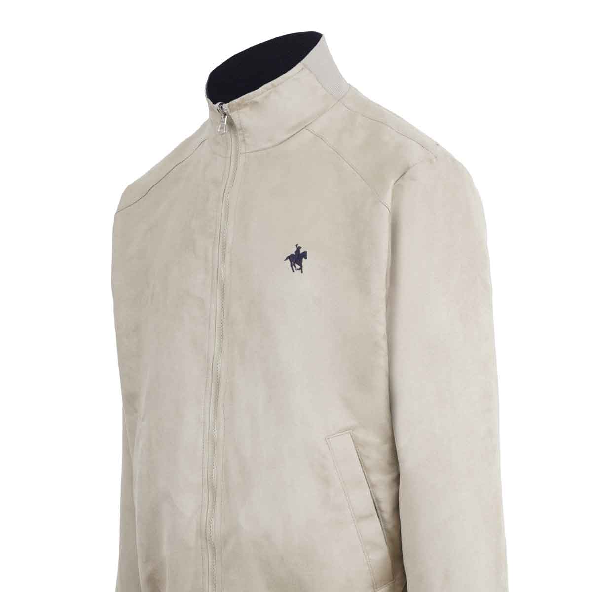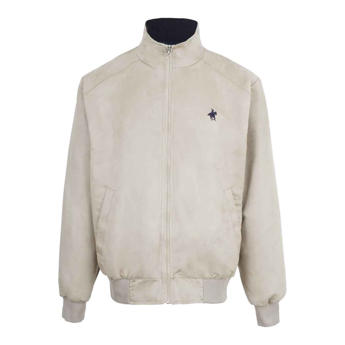 Doble vista, doble estilo. Chamarra reversible de suede y poliéster fino, con tejidos en cuello, puños y pretinas.