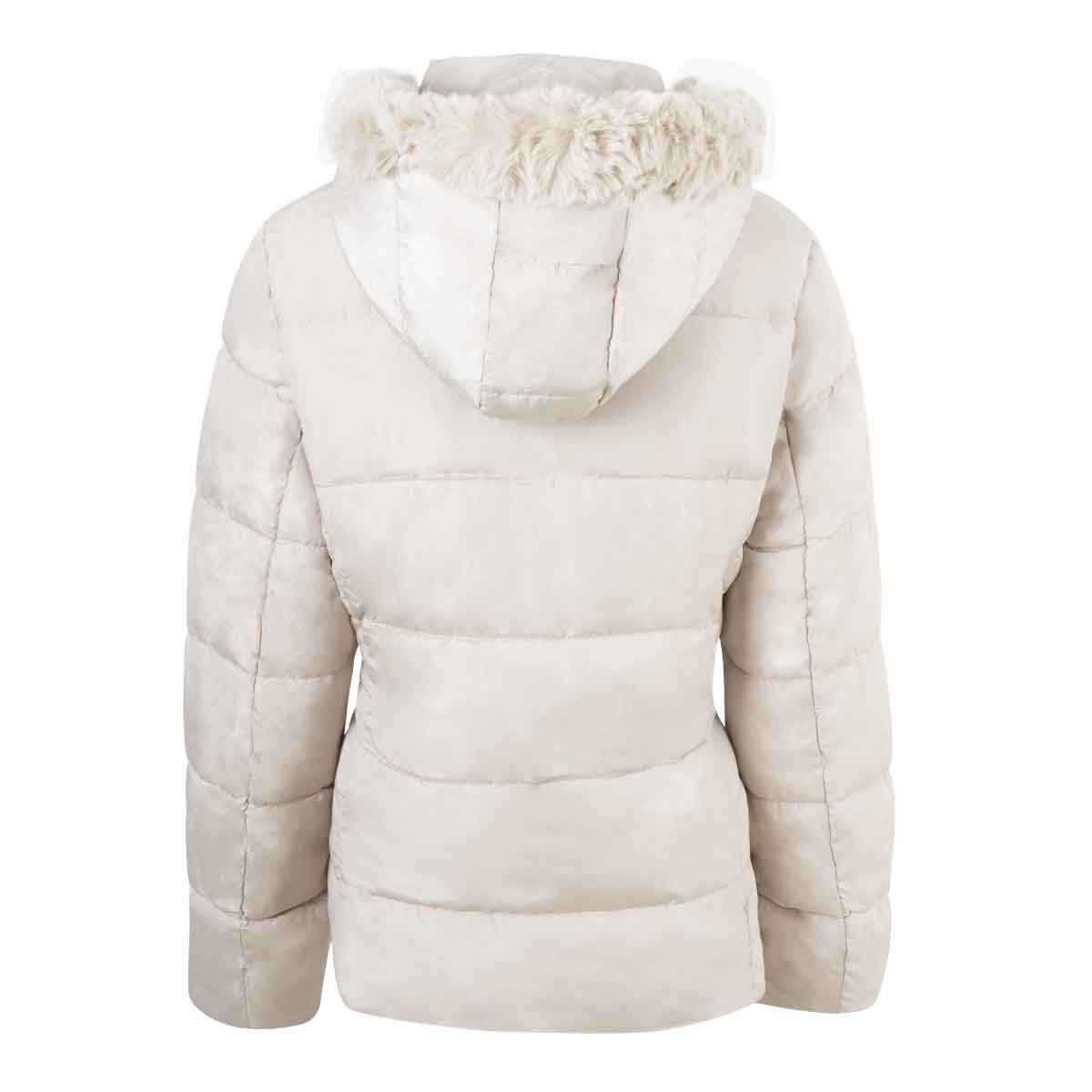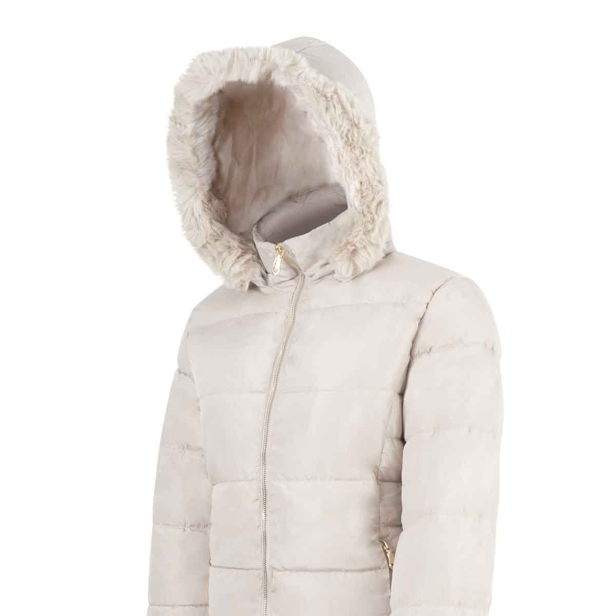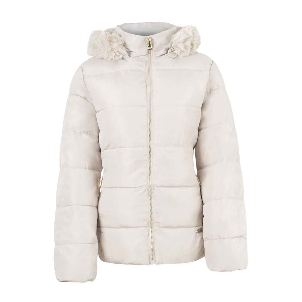 Chamarra para dama en nylon ligero y resistente, ideal para el frío. Cuenta con capucha desmontable, bolsas con cierre y capitonado horizontal que aporta estilo y abrigo.
