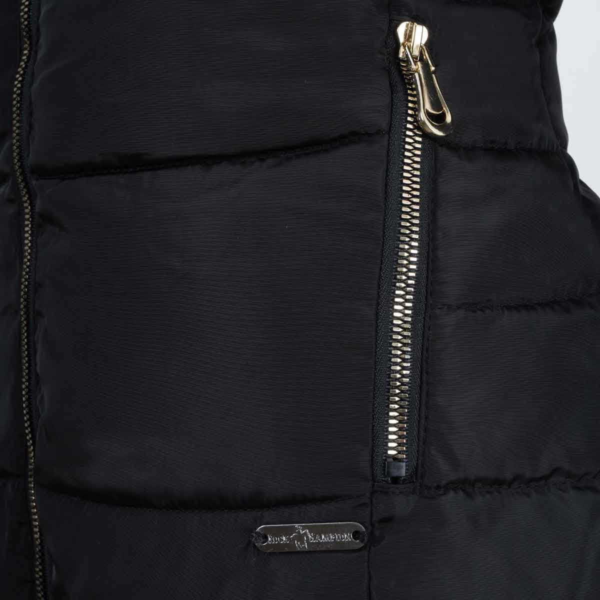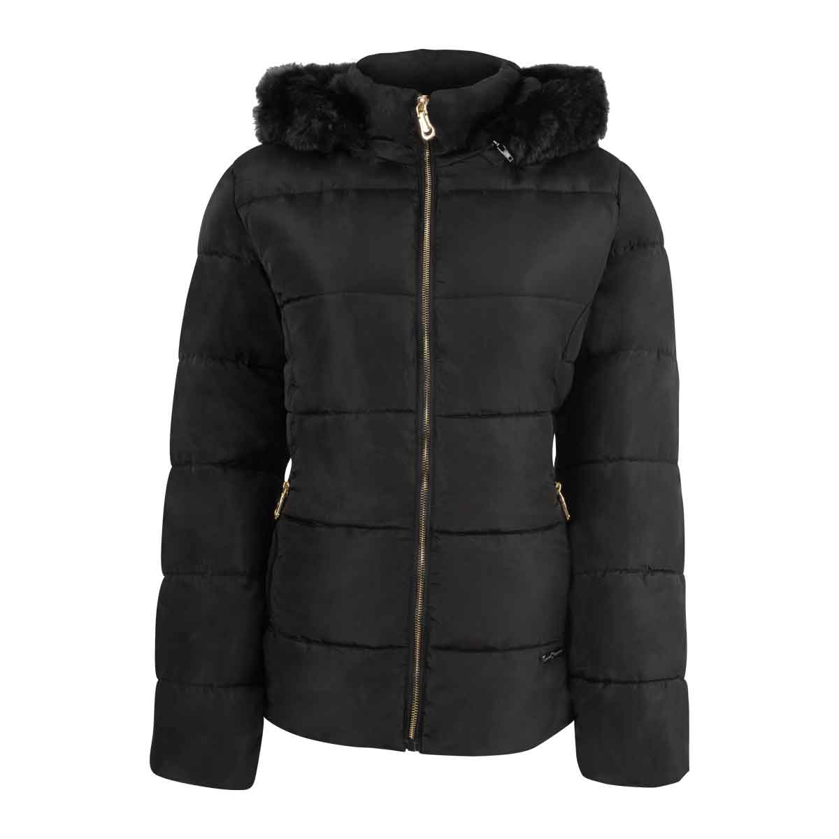 Chamarra para dama en nylon ligero y resistente, ideal para el frío. Cuenta con capucha desmontable, bolsas con cierre y capitonado horizontal que aporta estilo y abrigo.