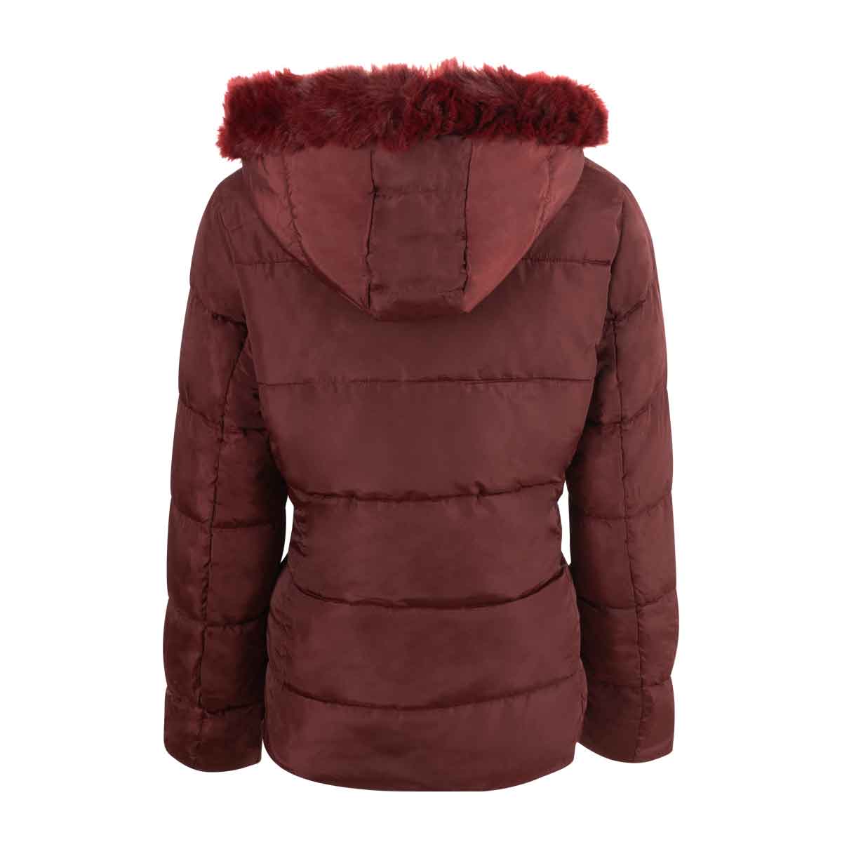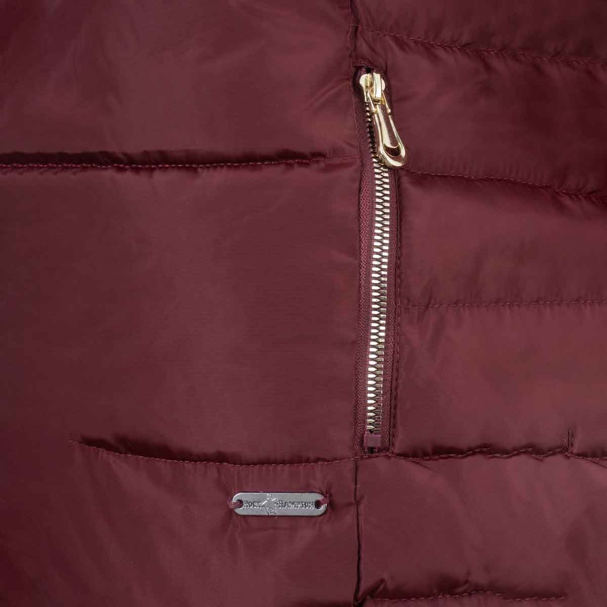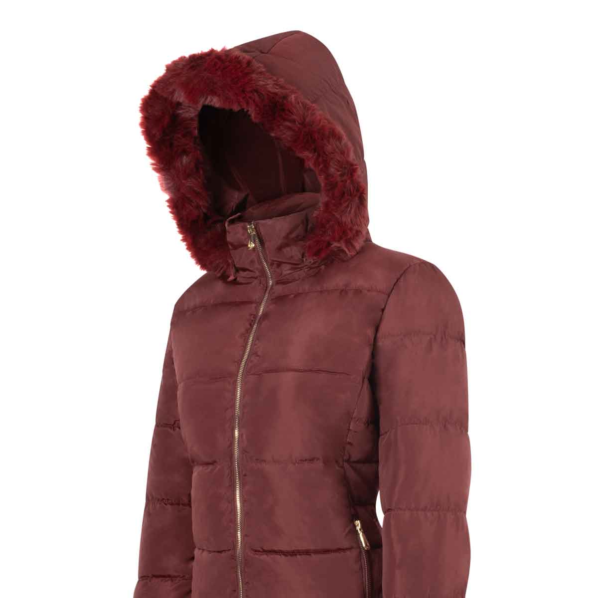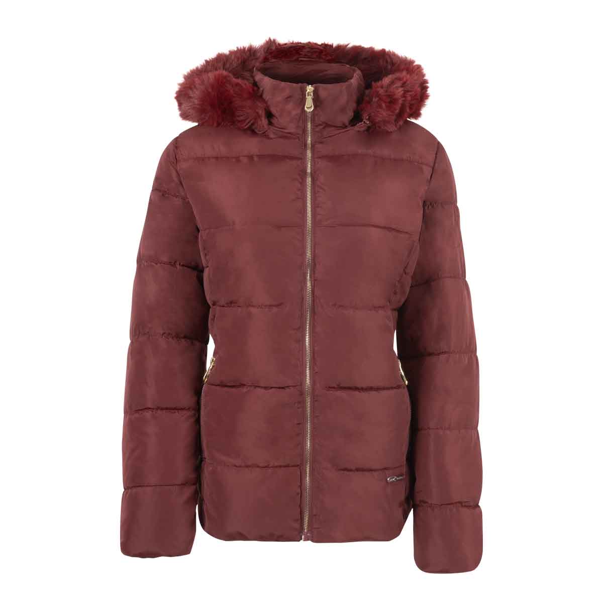 Chamarra para dama en nylon ligero y resistente, ideal para el frío. Cuenta con capucha desmontable, bolsas con cierre y capitonado horizontal que aporta estilo y abrigo.