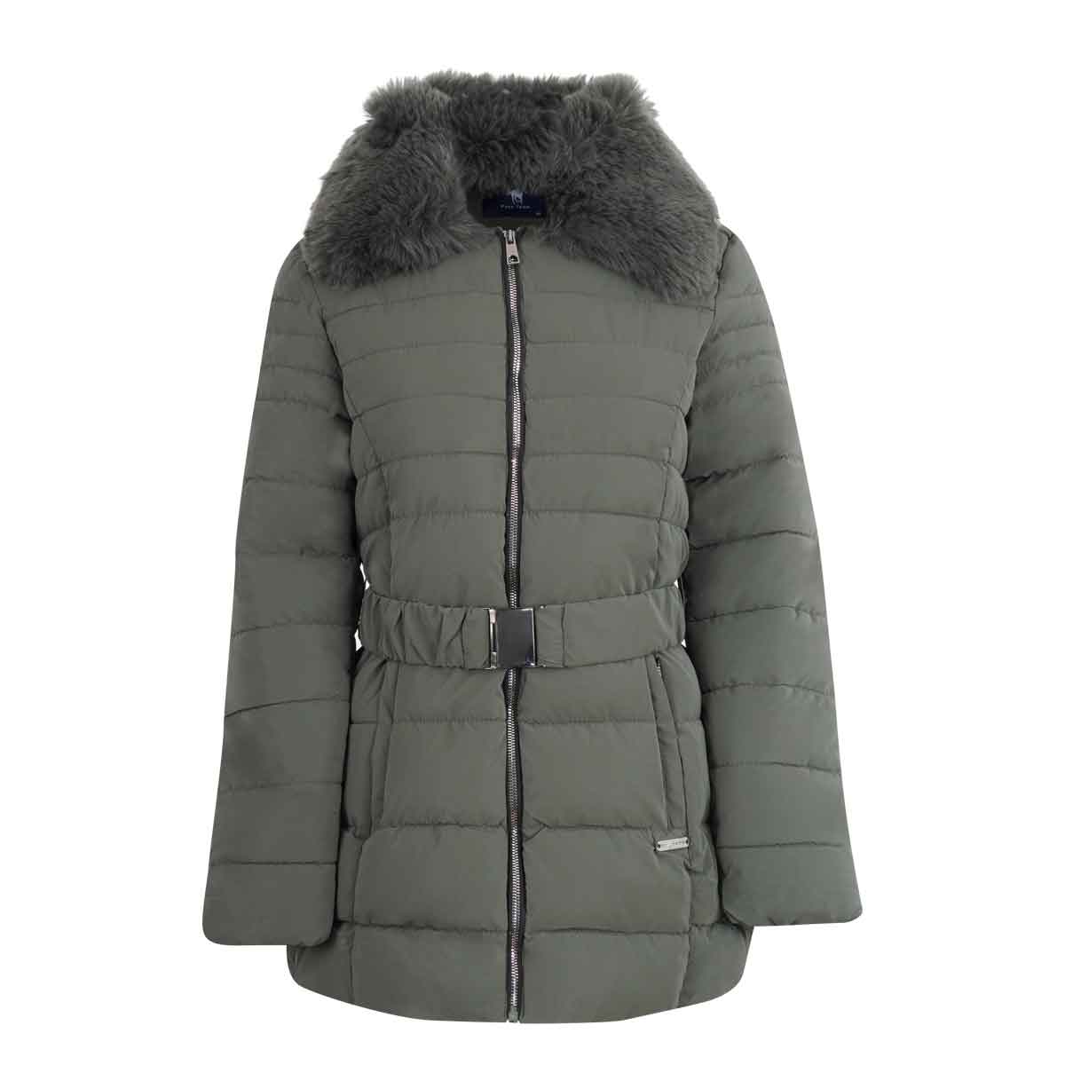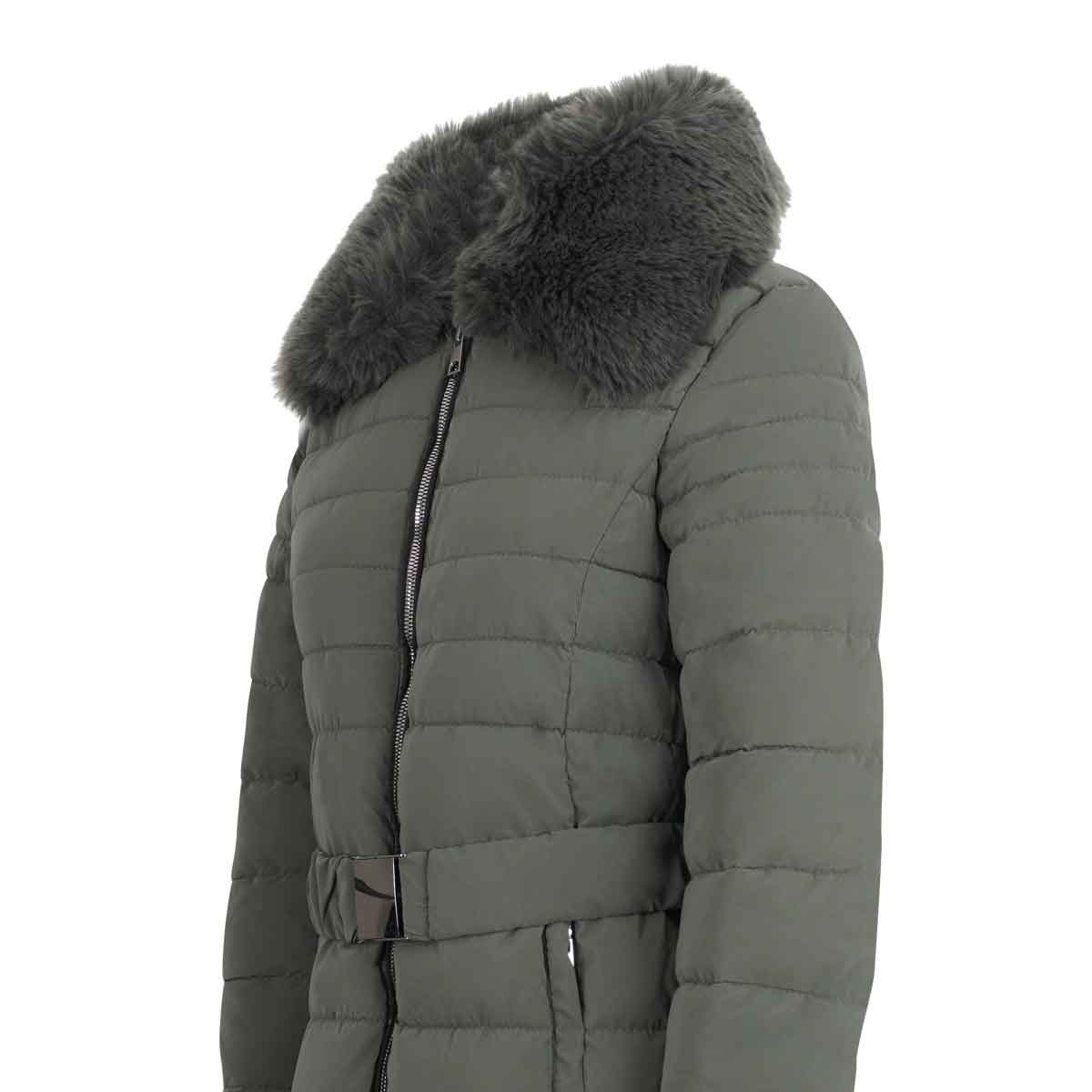 Chamarra para dama confeccionada en nylon ligero y resistente, con capitonado horizontal que aporta textura y estilo. Incluye cuello desmontable, cinturón ajustable que define la silueta y bolsa delantera para mayor funcionalidad.