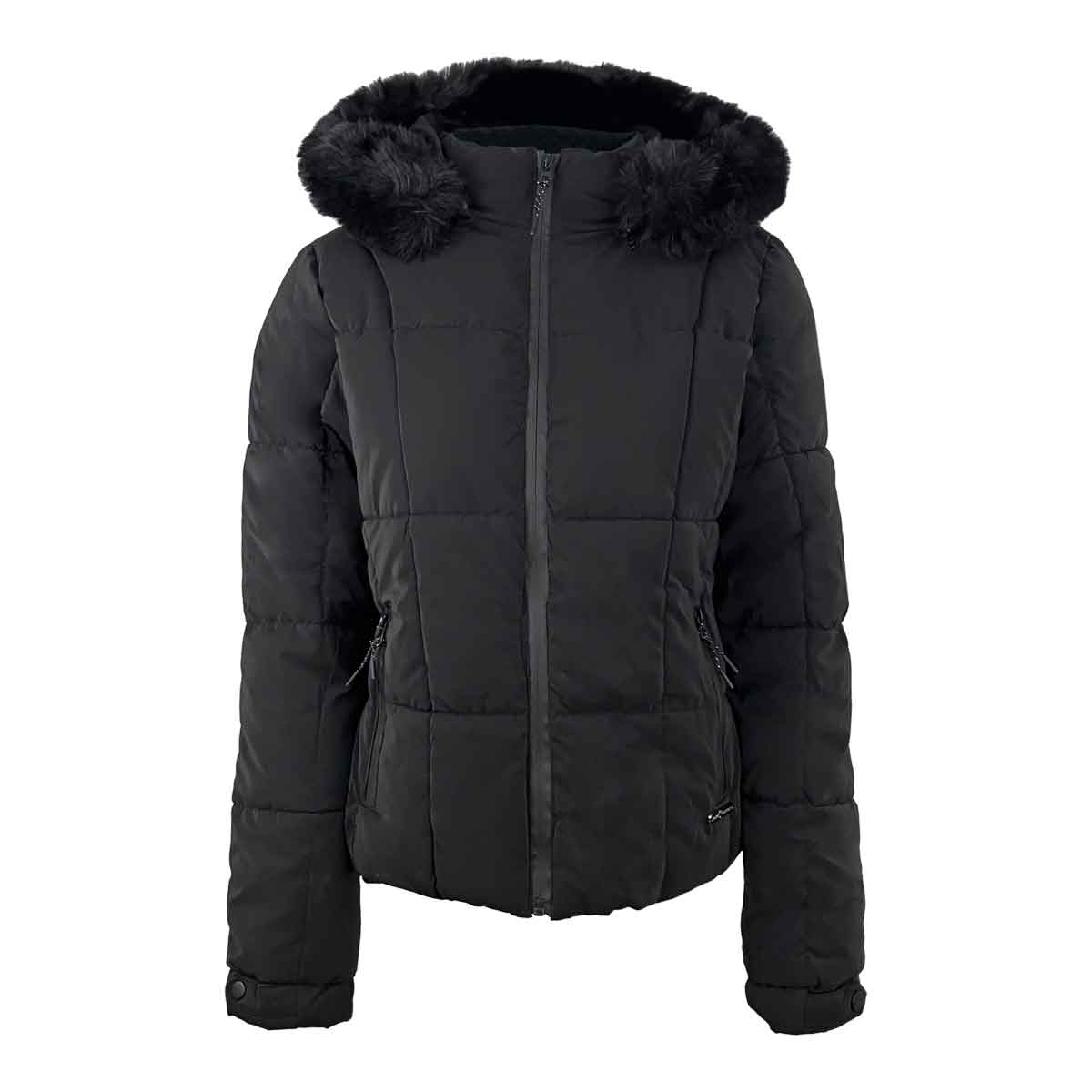 Chamarra para dama confeccionada en nylon resistente, diseñada para mantenerte cálida y cómoda en climas fríos. Incluye capucha separable con peluche, ideal para mayor abrigo y estilo, además de bolsas con cierre para mayor seguridad.
