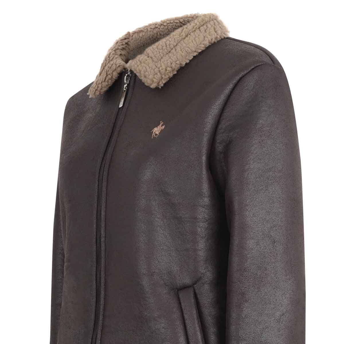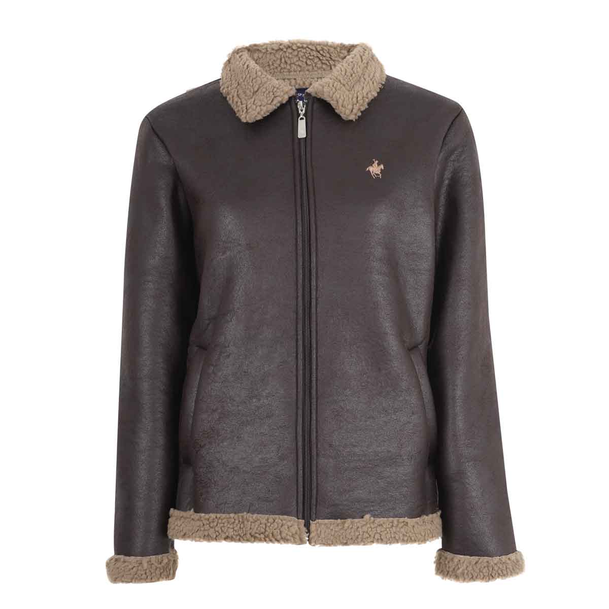 Chamarra estilo Bomber Piloto para dama, confeccionada con suede suave al tacto y borrega interior que brinda una sensación cálida y protectora. Cuenta con tejido en pretina y puños para un ajuste cómodo y estilizado.